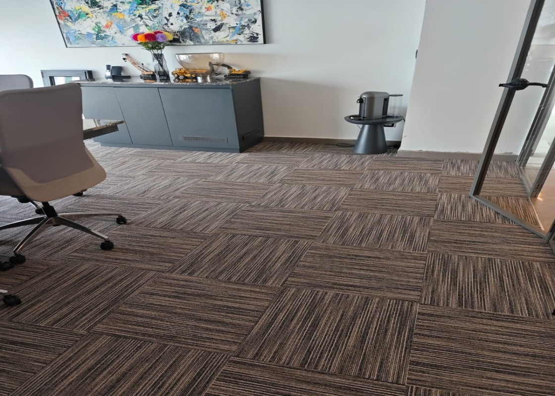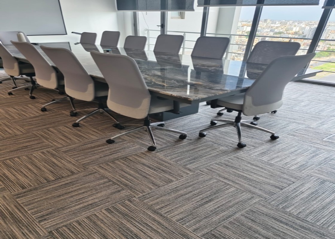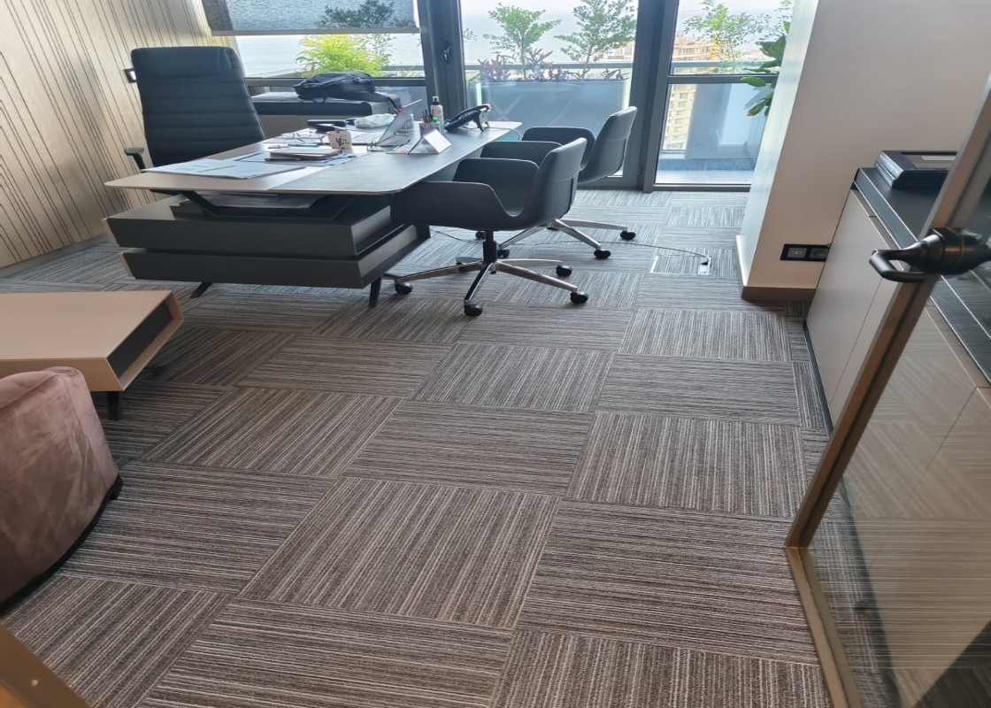 Senegal'de bulunan iki şirketin 2024 yılında yapılan yaklaşık 1000 m2'lik ofis halısı projesinden görsellerdir. Ofis kullanımında temiz, şık ve lüks bir etki oluşturmak için karo halılarda Cobalt ve Lineation serimizi tercih ettiler.